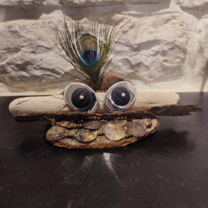 Voici certaines de mes créations que je fabrique avec du bois flotté, des galets et des objets que je chine sur les vide-greniers. Mes articles sont réalisés à 90 % de récupération ou d’occasion et très peu de neuf.